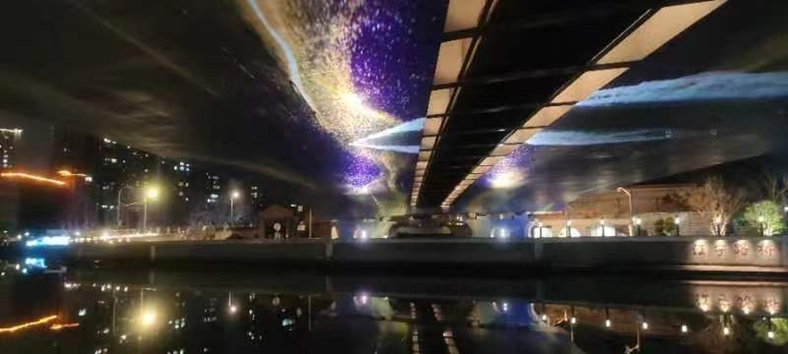 As a cornerstone of the municipal government’s vision to enhance the allure of this iconic waterway, this initiative not only beautifies the surroundings but showcases the city’s deep cultural heritage as well. It also serves to educate both locals and visitors alike about the historical significance of the bridges and the creek. Christie’s trusted partner, Shanghai Qingying Digital Technology, played a pivotal role in the design and installation of multimedia solutions that brought this vision to life. Over 30 Christie DWU15-HS laser projectors are used to illuminate Jiangning Road Bridge and Gonghe New Road Bridge, two magnificent structures along the meandering Suzhou Creek that are a testament to Shanghai’s urban and economic development. Eight projectors are discreetly installed beneath Jiangning Road Bridge to project stunning images spanning 53 meters (174 feet) in length and 18 meters (59 feet) in width. Additionally, two dozen DWU15-HS projectors are positioned on both sides underneath Gonghe New Road Bridge, creating captivating visuals measuring 63 meters (207 feet) long and 49 meters (161 feet) wide after nightfall. “This pioneering project aims to boost tourism and proudly presents Shanghai as a global city that values both its historical heritage and modern advancements,” says Chao Fu, technical supervisor, Shanghai Qingying Digital technology. “The Christie DWU15-HS projector, with 15,750 lumens, was selected for its compact footprint, durability, and excellent color reproduction. These attributes have made it the preferred choice for large-scale projections, consistently delivering breathtaking visuals at venues in Shanghai and beyond.” Fu emphasized the project’s distinctive challenges, navigating tight installation spaces under the bridges while striving for even brightness across extensive projection areas. Innovative approaches like cross-projection and projector stacking played a crucial role in maximizing visual impact.